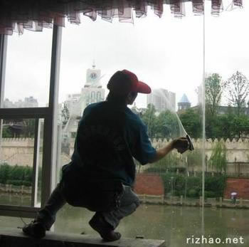 將涂水毛套放入配制好的玻璃清潔劑中充分蘸濕,均勻擠干至不滴水為止。從玻璃的一邊開始,均勻地將玻璃清潔劑涂抹在玻璃表面,涂抹方式可為S形或采用從上至下的直線方式,注意每次涂抹的面積不宜過大,以免清潔劑風干。