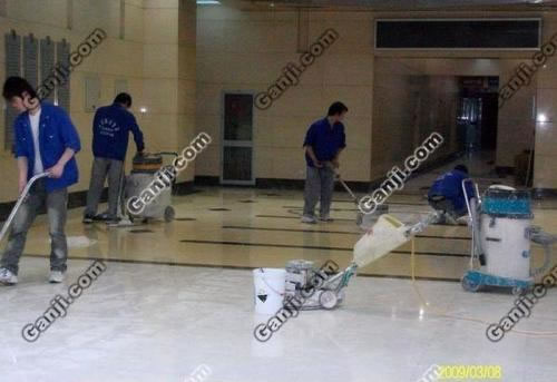 第二步:用水泥密封硬化劑均勻噴灑或者拖刷地面一道,材料用量為0.15㎏/㎡。完全固化約4-8小時后打磨處理 a、300目的樹脂磨片打磨一遍,使地面光滑、均勻,后清理干凈地面,噴灑水泥密封硬化劑一道,材料用量為0.1㎏/㎡,完全固化約4-8小時后打磨處理。