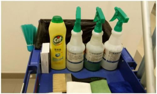 六 按照廠商標簽所指示,將適量的清潔劑加入清水中,將另一個水桶加入半桶清水。